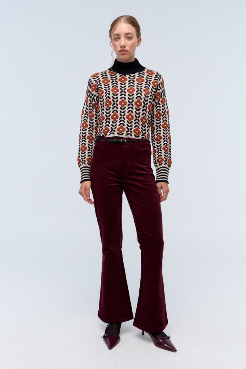 Este pantalón corte oxford de pana en color bordo, una tendencia actual, estiliza la figura y ofrece gran comodidad. Ideal para un look moderno y cómodo.